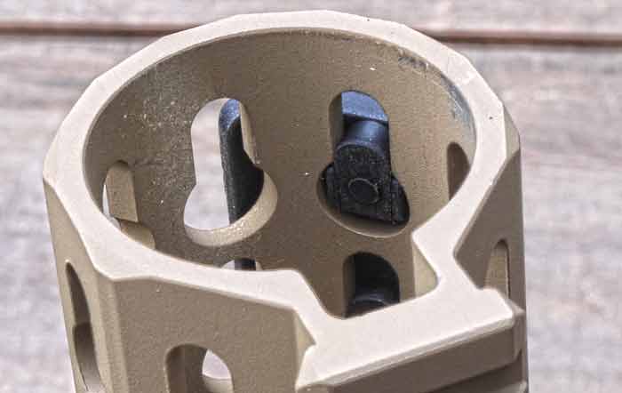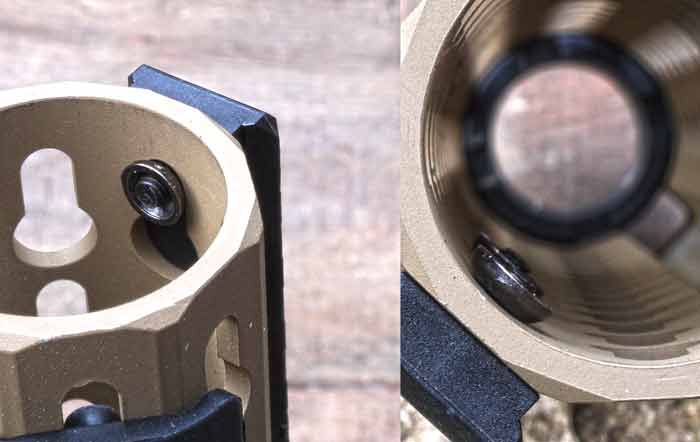 Now that we got that out of the way, we can talk about the keyholes. At first glance, everything looks fine, hole diameters are correct and keyhole distances from each other are correct as well. The first accessory I tried was the rail section (made by AABB) even before the rail itself was mounted on the receiver. The rail section went on without problems but I found it odd that screws are sticking out too much on the inside.