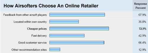 We hope that this is very much helpful for online airsoft retailers and will listen to what online buyers of airsoft products have indicated in the survey. A more comprehensive report will soon be released in November.