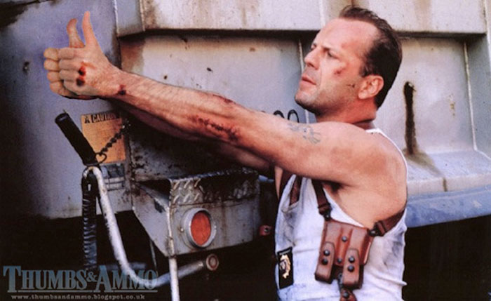 Anyone can contribute to their own thumbs-up action hero to Thumbs & Ammo so if you like what you see and want to share something, then have that Photoshop software ready and the action scene you want to touch up. The only thing required for the touched up photo is that in the original photo or screenshot, the actor is holding a gun. As the owners of Thumbs & Ammo say "Real tough guys don't need guns, they just need a positive, can-do attitude." So be it.