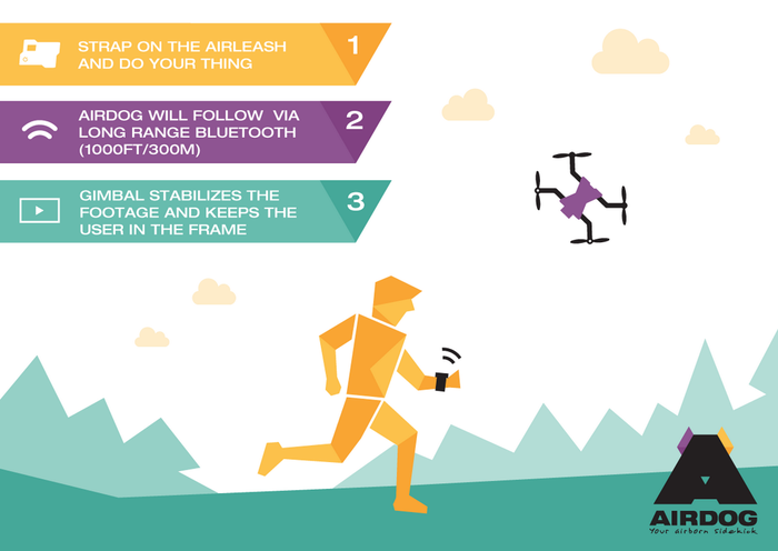 There are drones which already have the "follow me" features though the implementation is more of an afterthought. AirDog's basic concept is the same, with the exception that it's designed from the ground up to do just that function --- follow its owner like a dog on a leash.
