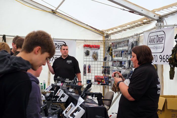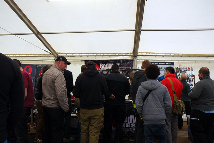 After the visit to the Gunfire booth (and nicking three of their glowsticks with the approval of Łukasz) and leave to discuss business with other potential customers and clients, it was roaming time to check the whole place. By 11am, the Fair is now getting steadily filled, I checked the various exhibitors in the tent, which by now you are all familiar with as we have already interviewed or wrote about them during the previous Airsoft Arms Fairs and even the British Airsoft Show. Armed with both stills and video cameras, I took photos and videos of the exhibitors. RedWolf Airsoft, The Grange, Airsoft International, Ammo Drop, Pro-Airsoft, Swindon Airsoft, and Apocalypse PX Airsoft were located there.