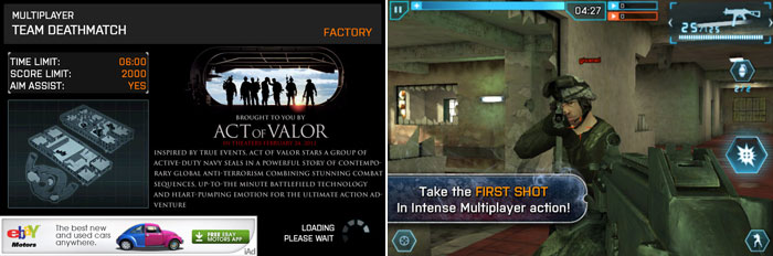 The graphics are indeed nice, but the problem of multiplayer first person shooter gaming on a mobile device is the lag time that you will experience, especially if you find yourself sharing the wifi hotspot at a popular coffee shop. It does indeed test your patience as you wait to be matched with other online players.