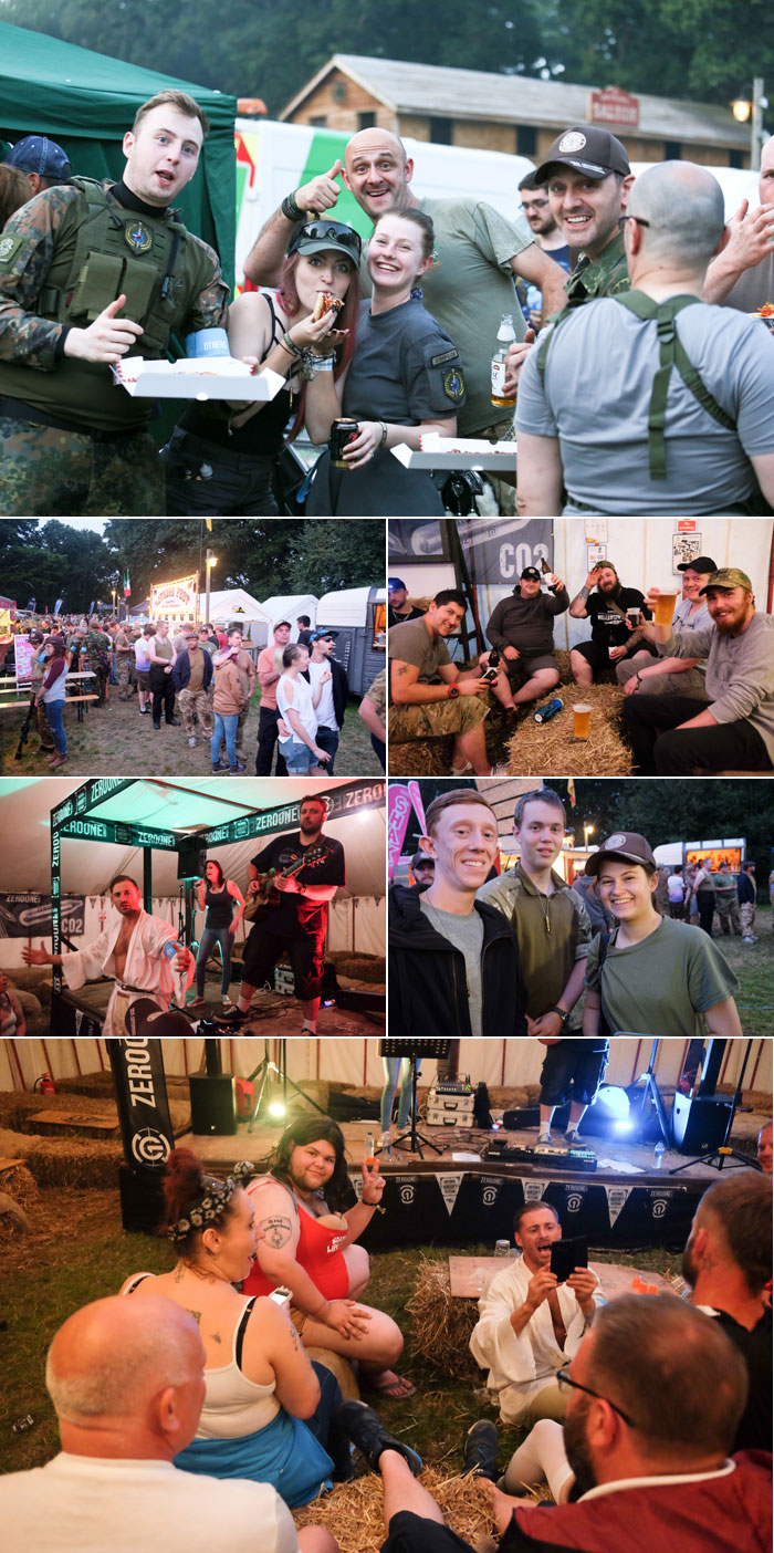 After the raffle, it was dinner for the whole Festival camp, with long queues to the food vans which luckily offer a variety of food, from the usual British fare to pizzas, German sausages, French crepes, and Greek wraps. Hopefully, next year they add more such as Chinese as well. For us, it was the pizza and we were joined by Filipino airsoft players from the various groups for beer at the bar and inside were all sorts of people from the usual players in their tactical clothing, to a group of blokes dressed up like whatever characters from Disney and Borat that they looked like having a stag night.