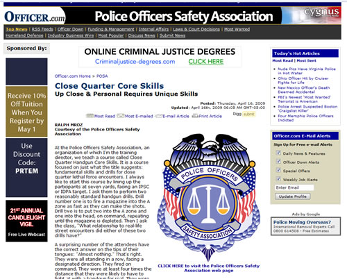 Interesting article at Officer.com written from the Police Officers Safety Association. It is about training, safety, and developing the core skills for Close Quarters scenarios. Airsoft is being introduced as a safer and more cost-effective training tool as real firearms training in CQC has cost some officers' lives. And airsoft provides realism in terms of projectiles and weapons. It is also an informative article as it provides some drills to develop reflex and muscle memory.