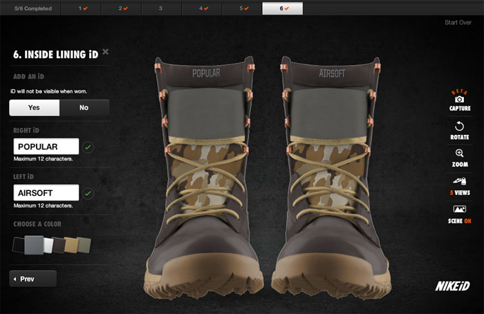 The great thing about the NIKEiD online customisation service is it allows you to personalise your Nike SF Boots that is suited to your taste, especially if you want something that will be unique than the others (though we can't say "standout from the rest" which seems to be a phrase that defeats "stealth" for tactical purposes).