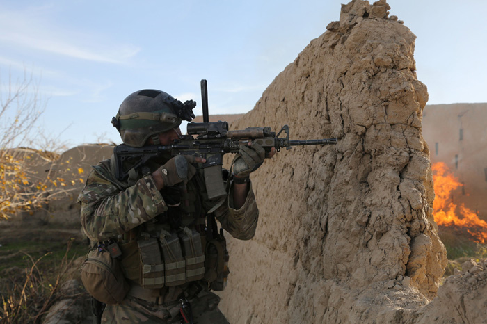 (Defense.gov: A U.S. soldier in Perozi village, Panjwai district, Kandahar province, Afghanistan, Dec. 4, 2013. Staff Sgt. Bertha A. Flores)
