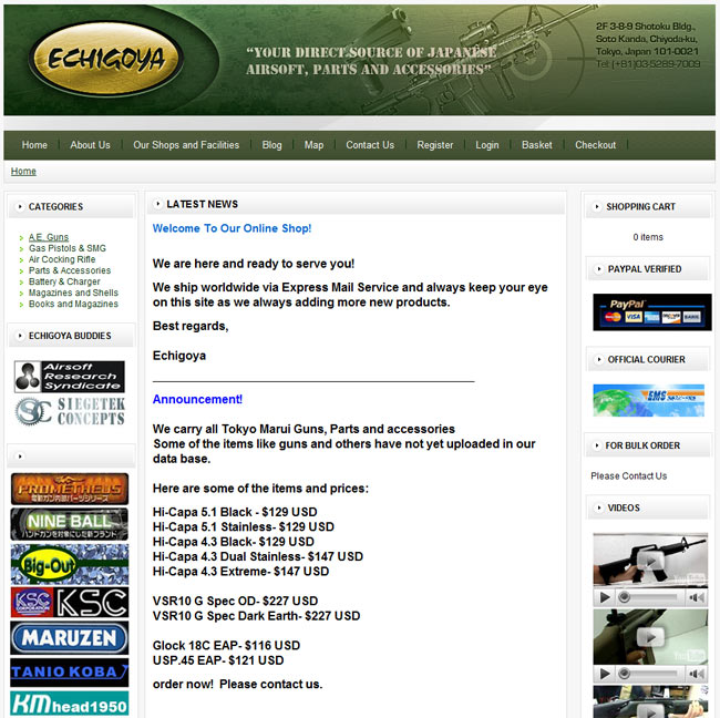So here's one Japanese vendor which launched its English store website to provide us with airsoft products direct from Japan. Echigoya is not a new store, and in fact, it's already a well known airsoft store with four (4) branches around Japan, and has been in business since 1993. Much older than a lot of airsoft shops in Hong Kong.
