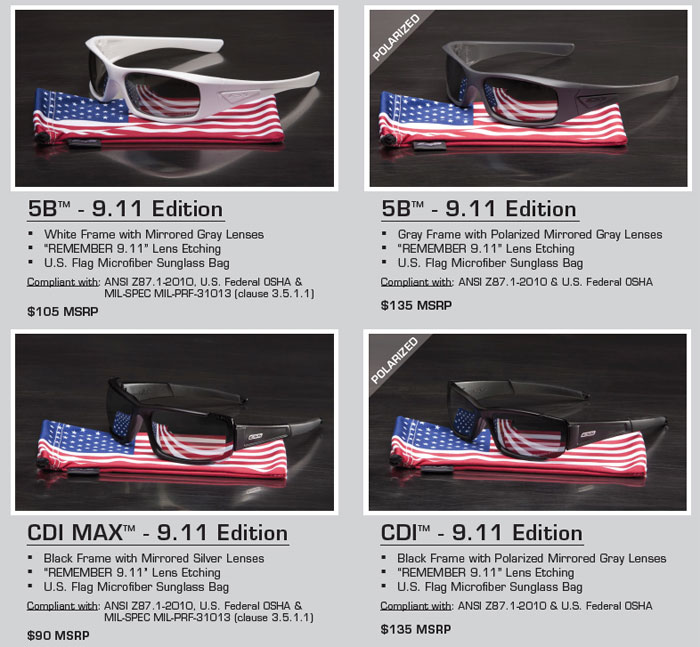 In an effort to memorialize 9.11 and commemorate the 10th anniversary of the day's unforgettable events, ESS has developed a limited-edition series of its premium ballistic sunglasses, including the brand-new 5B sunglasses. Each pair of Remember 9.11 edition sunglasses bears a commemorative laser etching on the lower portion of the left lens. Four different styles within a price range from $90 to $135 will be available. 25 percent of ESS sales from each of those sunglasses or associated apparel will be donated to the Stephen Siller Tunnel to Towers Foundation.