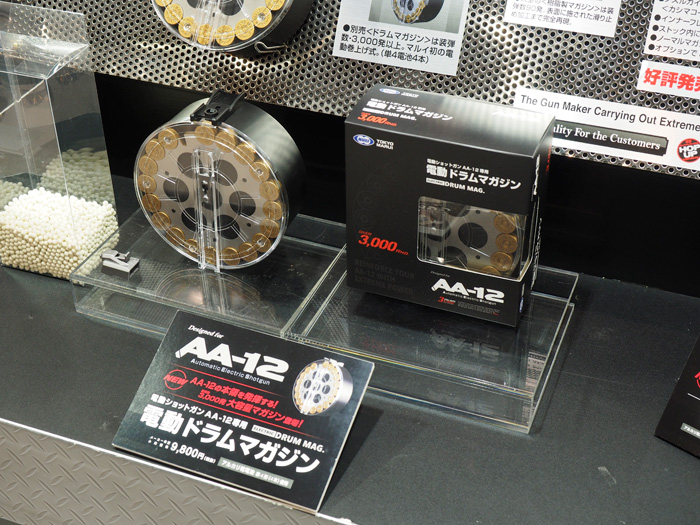 For those waiting for the 3,000-round Drum Magazine for the Tokyo Marui AA-12 AES, it will be ready soon. Owners of the AA-12 AES wanting to own the drum magazine took time to closely look at it as it was on display.