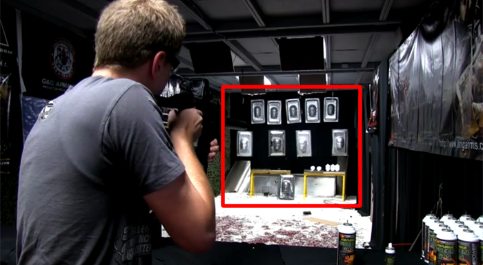 4. The wonders of video editing software. You will notice that he's not hitting any target when he was firing during single-shot mode and no bbs bouncing around either. But when he goes full auto, it seems that there were bbs being fired, as the curtain at the end of the target shooting area moved. But then notice at 3:34, 3:35 and 3:36 that the targets area jumped vertically and back. Watch the video in full screen and you'll notice it as it's not noticeable in small screen size. This means that a previous video had been made and imposed on this scene. The firing sound was audio added during the editing.
