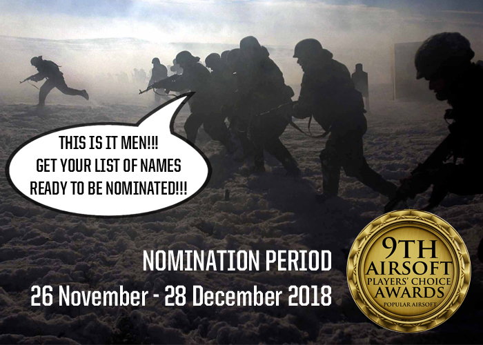 We hope you have already prepared your list of nominees as the biggest online event in the airsoft world has finally begun --- the 9th Airsoft Players' Choice Awards.