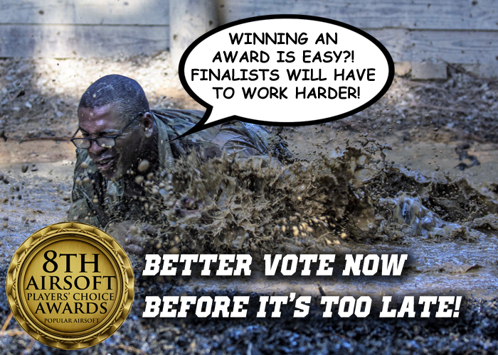 Yes indeed! We have two weeks remaining for the Voting/Finals Period for the 8th Airsoft Players’ Choice Awards. That is still a lot of time, but sometimes time flies past that before you know it, it’s over.
