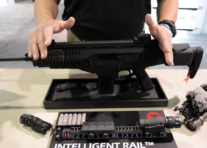 In what is probably a very intelligent solution for the high-tech warrior, Beretta and T-Works are working on what they call an "Intelligent Rail System" Technology.