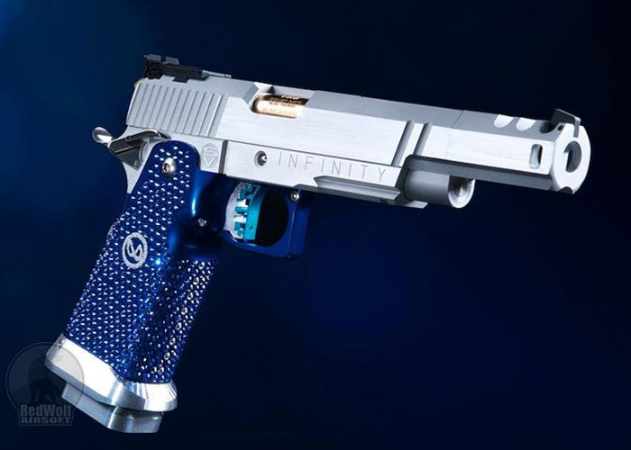 I guess I was right that this will be full blown custom gas blowback airsoft pistol from the Airsoft Surgeon rather than as a kit for you to make your own custom handgun with the bling