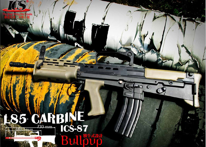 Following the success of their first two AEGs in their L85 series, the L85 A2 and the L86 LSW, ICS unveil their latest creation in the series: the ICS-87 L85 Carbine.