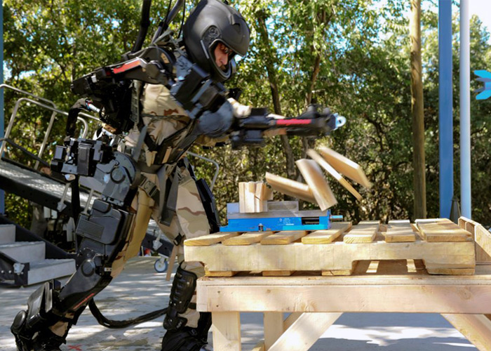 Tony Stark doesn't yet have to feel insecure about this Raytheon project as his Iron Man suit is much sexier and more powerful than this. This one can only carry heavy objects while Iron Man can fly and has repulsor and unibeams to blast the bad guys.