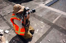 Follow up on the previous story below. Panning - Freeze the action by "panning," i.e. move the camera in the direction as the moving subject. Panning produces images with the subject in sharp focus and the background blurred.