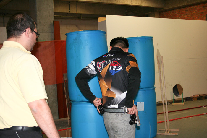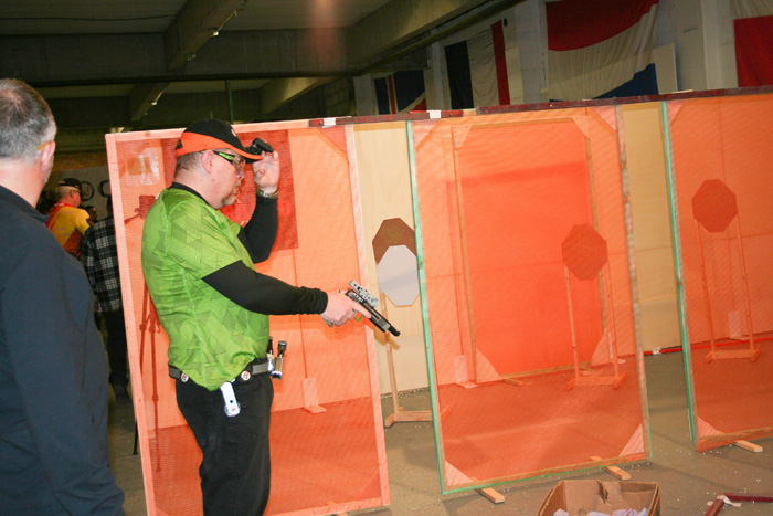 On Saturday, the 11th of March, all the shooters were present by 8 AM at the venue, which is the A6Lawenforcement, in Brussels. At 9 AM René Hoeck and Bart Verwijst welcomed all the shooters, and gave the necessary instructions to all. The shooters were divided in 6 squads, and had to shoot 16 stages that day. The timing made that the squads had all the time enough between the changes from one zone to another to have a (free) coffee or tea, and a snack (croque monsieur, and hotdogs).