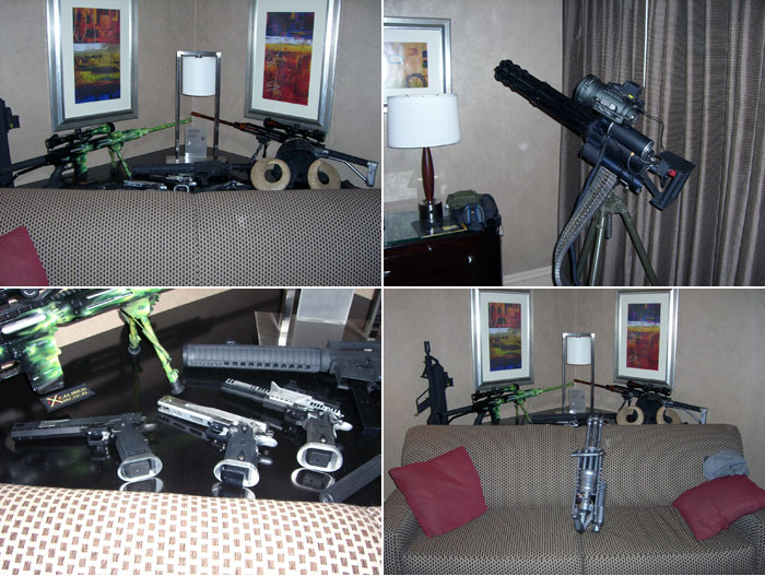 The next set of photos from Tim show the various airsoft guns customised which I think by XCaliber Tactical as the green AR there is the one that Tim Ellwood has as customised by them. Just imagine the rooms booked at Las Vegas for the Shot Show, that city will have enough firepower to start World War III for the next few days.