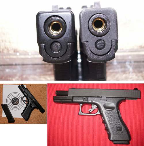 Looking at the front end of these pistols (hopefully not during skirmish) it still is very apparent that the R17 “shines” and the outer barrel is somewhat loose coming out of the slide. The reverse can be said about the G17’s business end.