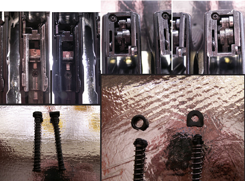 Looking at the internals of these pistols makes me conclude that the themes “matte” and “smooth” applies to the insides too. The R17’s internals are smooth, shiny and well lubed. All things opposite can be said about the G17’s internals. Surprisingly enough, the G17’s blowback is impressively stronger than the R17’s. Most of the parts are of the same dimensions therefore theoretically interchangeable. The G17’s recoil spring is slightly stiffer than the R17’s which could account for that awesome slide return.