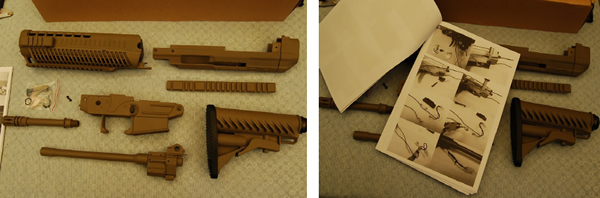 I was so excited when I opened the box, just like a little kid on Christmas morn. I quickly went through all the parts and made a quick inventory, trying to figure out how the parts connect without looking at the manual. The manual was a B&W photocopy without any text but it was really informative and foolproof. There was an upper and lower receiver, adjustable buttstock, outer barrel, handguard and flat top rail stashed in the relatively large box. I also found a couple of plastic bags with screws, a trigger guard and magazine converter, which allow me to use M4 magazines with the Version 3 gearbox.