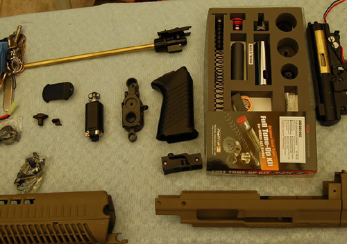 Attila, who did the gearbox upgrade while I was assembling the external parts, only used the spring, the spring guide and the bushings out of that set. He said that changing those parts will give you maximum gain with minimum pain. He should have told me earlier not to buy the whole upgrade set... aarrggghhh!!!
