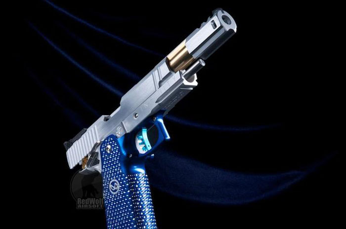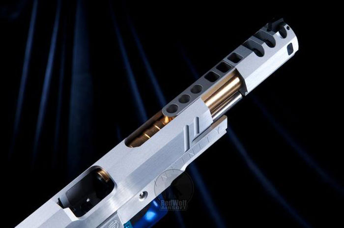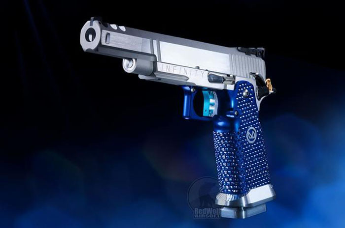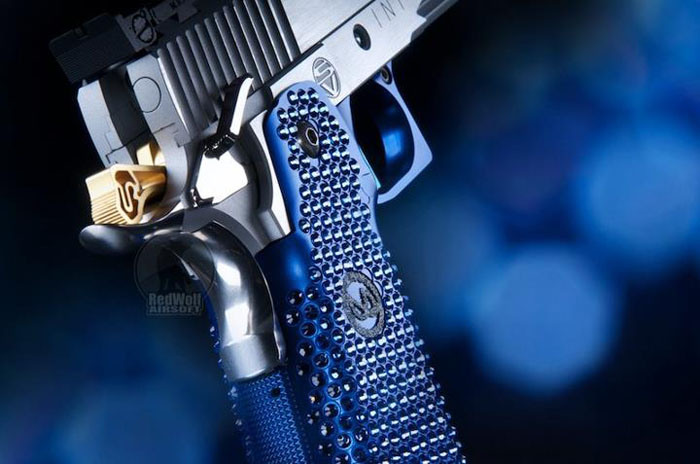 If I'm not wrong, this airsoft pistol uses the Tokyo Marui Hi-Capa 5.1 GBB Pistol as the base gun; has a Prime Type C SV grip since it has the dimpled look allowing for embedding the Crystals; the Slide set most probably from the Airsoft Surgeon Infinity 2011 Hero which in itself is already priced at US$615.00. The internals will be tight barrels from PDI. If this will be delivered in a pistol case with Swarovski Crystals too, then this will be the ultimate blinged pistol for the time being