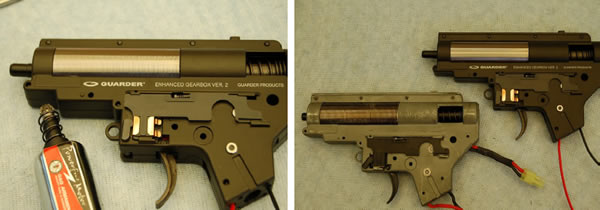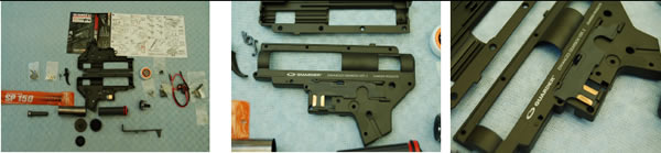 I’ve decided to get a full gearbox instead of buying all the parts one by one. I know that a full gearbox is expensive but it’s still cheaper than an upgraded gas or spring sniper rifle plus having this will give me the option later to go back with the old gearbox whenever I want or in case something goes wrong. To change a full gearbox only takes about 30 minutes for an experienced person and it can be performed on the field (I am talking about Version 2 here). It also took me about 30 minutes to pick the right gearbox: Guarder. Their full torque gearbox comes with complete internals with the exception of the spring so I had to get an SP150 to make the gearbox fully complete. It comes disassembled (only the selector plate is pre mounted) so you need some experience with Version 2 gearbox to put it together without issues. It has a one page manual with some English text on it for guidance.