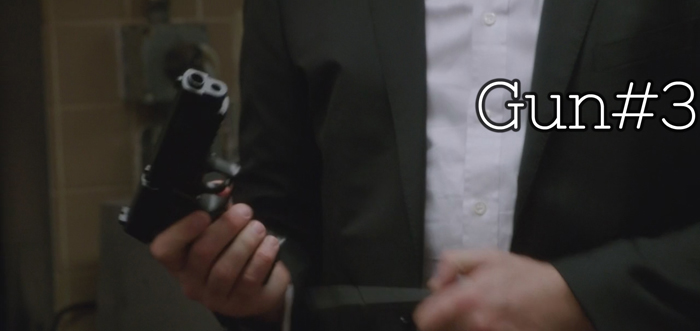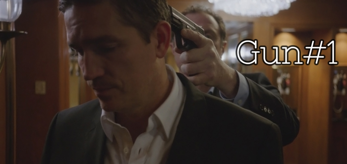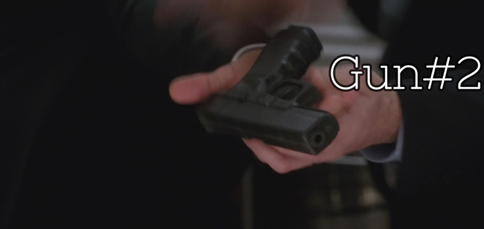 Then in the next scene this gun changes into sidearm#2 a Glock-looking object (assuming it's Mr. Reese's).