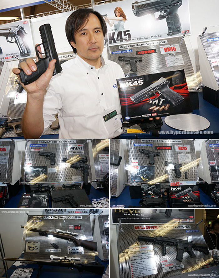Tokyo Marui was very much a big presence and their centerpiece product on display is the HK45 Gas Blowback Pistol which we were expecting a late 2013 release, but release got moved either to mid or late April 2014. Also on display is the pre-release M9A1 AEP, the VSR-10 Pro-Hunter and the recently released HK416D DEVGRU Custom.