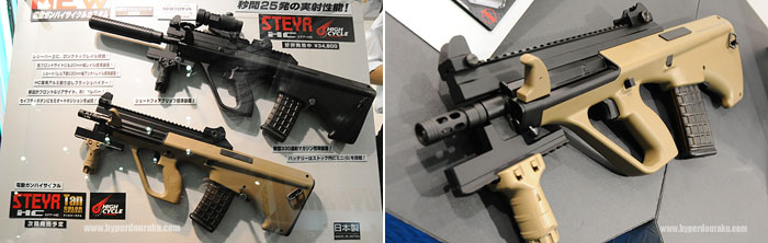 Not shown in Tokyo Marui's teaser announcement is the tan version of the TM Custom Steyr HC AEG. The release date is not yet known, but it is expected that the price will remain the same at JPY34,800. It is not really a full tan version as the Steyr Frame and foregrip are in tan while the metal parts are in black, making it technically a 2-tone one. Yas plans to use a 9mm magazine adapter to use 9mm AEG magazines and make it look like the Steyr AUG A3 9mm XS, which is the real steel gun that the Custom Steyr HC gets its design inspiration from.