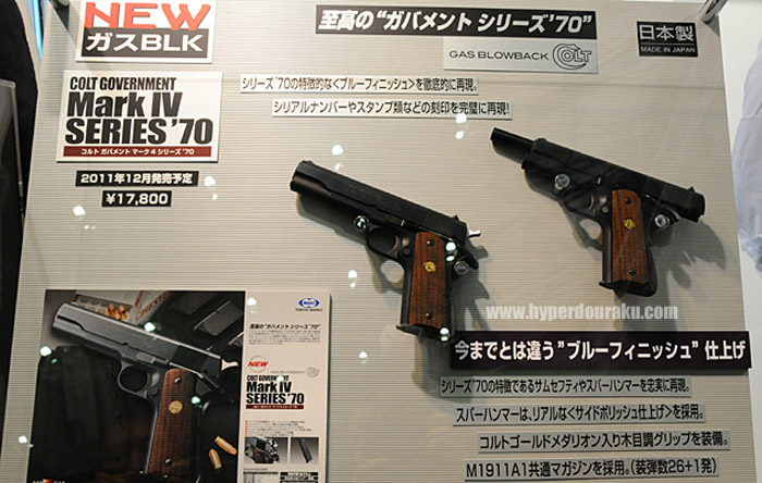 We were expecting a 100th Anniversary model of the Colt 1911, but we still welcome what they actually released which is the Colt Government Mark IV Series `70 which still part of the 1911 series. It shares the same magazine with the 1911 and will be released in the December 2011 at a price of JPY17,800.00. It has a beautifully polished slide, with a distinctively bluish finish. It is an improvement on the M1911A1 Government Model, which is now 100 years old.