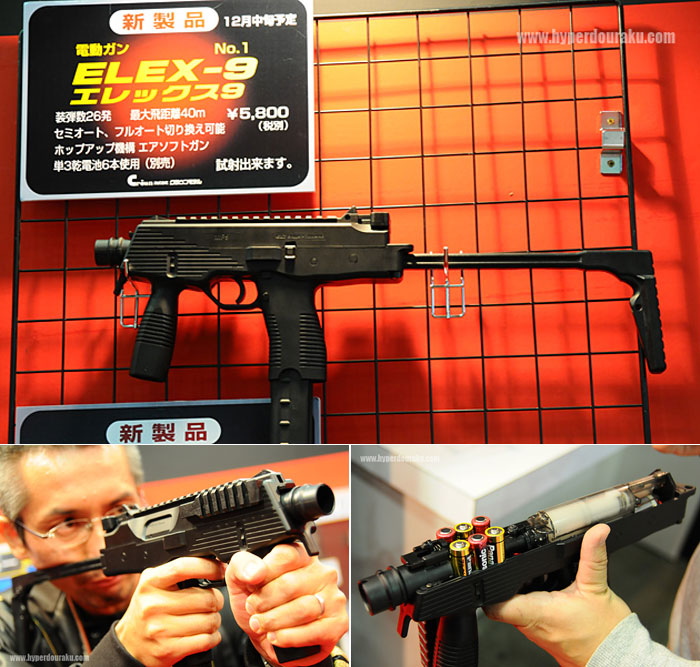 One final tidbit in this report of Yas is the Crown Model Elex-9 AEG which is a replica of the B&T MP9. It is powered by six AA batteries with a fixed hop, semi fire switch, and the magazine has a capacity of 26 rounds. It costs US$49 and will be released in mid-December.