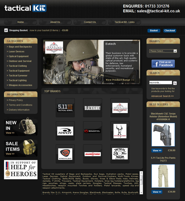 Over the past 3 years, Tactical kit has gone from strength to strength, from stocking just a few brands, they now boast over 39 brands from companies like 5.11, Blackhawk, Surefire, ESS, Magpul. In addition to the well-known brands, with Ian’s contacts, he’s also been able to source equipment that other retails can't like EOTech Holographic sights and Aimpoint.