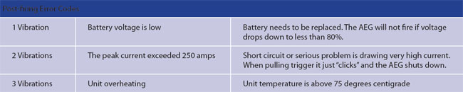Any error code above would shut down the AEG. In this case, you’ll need to reset the AEG by powering up. If during firing there will be some errors, then any of the following should be found to determine problems.