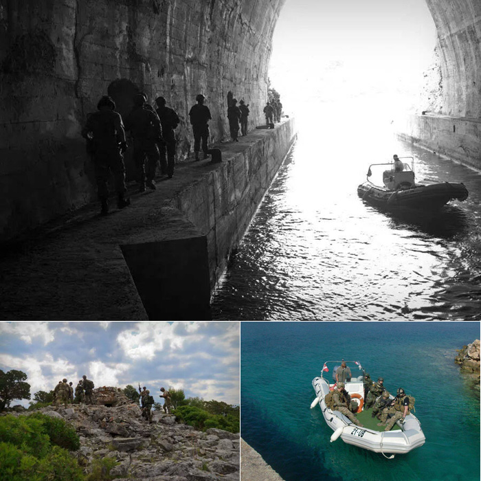 The offensive team was brought to a second island, where they mounted on zodiac boats, hidden in old submarine tunnels.