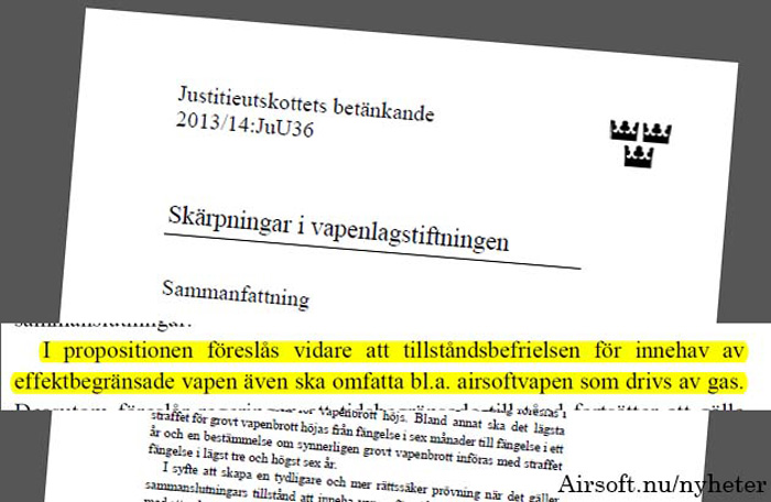With some lobbying through the petition of Nonex of the Airsoft Sverige, the Swedish Parliament approved the proposed change and set the date for such change to effect on the 2nd of January. Here's the text from Airsoft.nu in English: