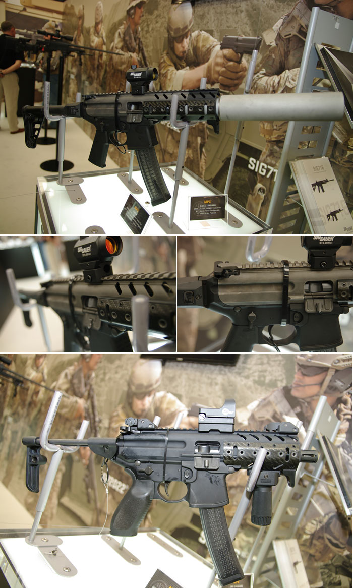 Sig Sauer had a few backup 9mm pistols as new products plus two versions of their MPX on display. ME WANT MPX AIRSOFT GBB. The upper receiver is so much nicer than the original M4s.
