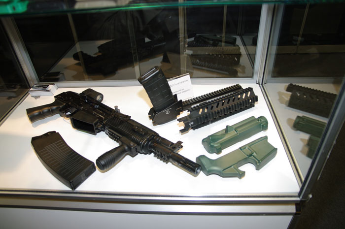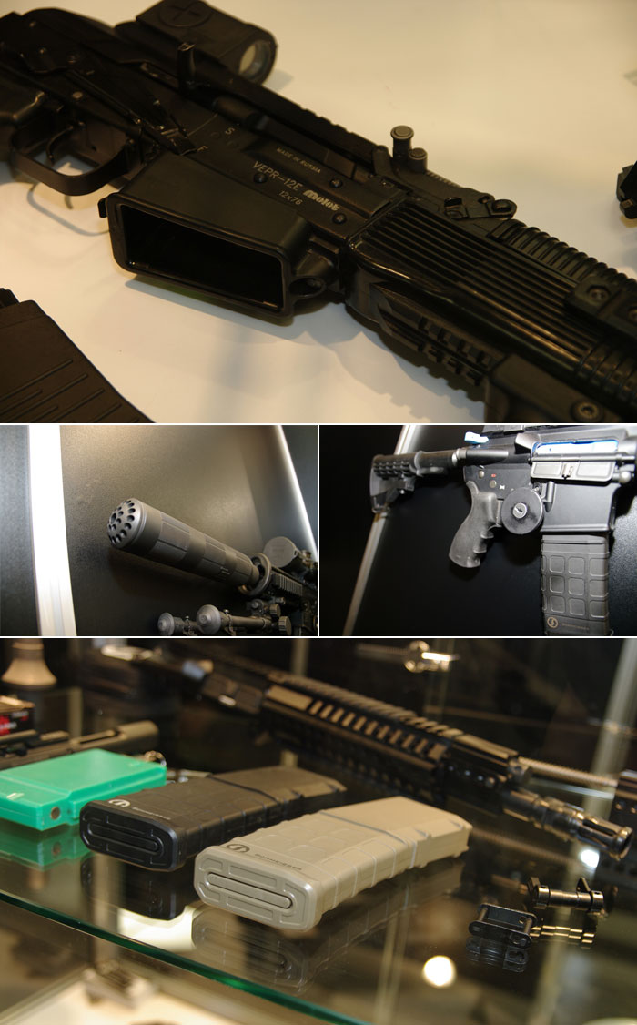 At Schmeisser's booth we were able to spot some PMAG wannabes and interesting accessories on a Molot 12 gauge. Their AR grip and silencer looks pretty as well.