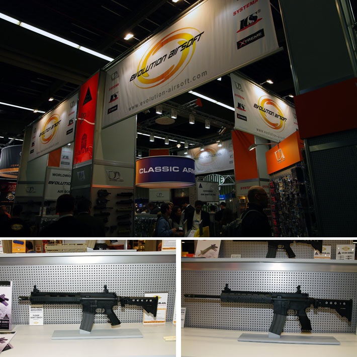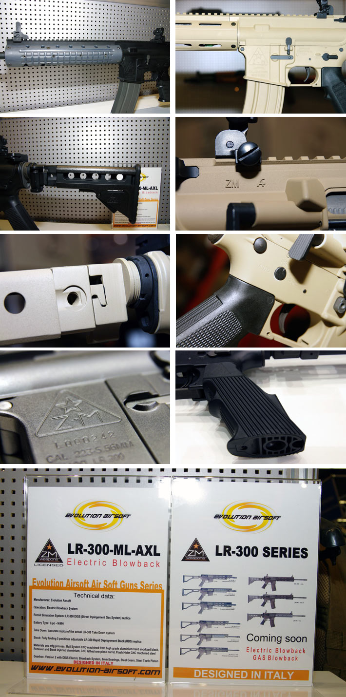 In other news from the same booth: Evolution AS says that new EBB and GBB versions from CA are coming in two months' time (coincidence?) just about when they release the ZM LR family. They will use CO2 or Green gas and will be rated at 1 Joule. Nothing new as far as internals but they will be offered with Tango Down or Magpul accessories and furniture.