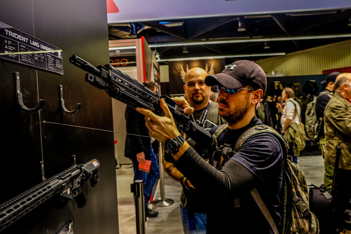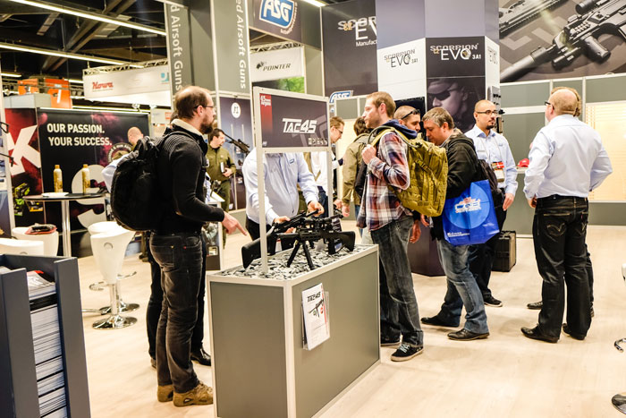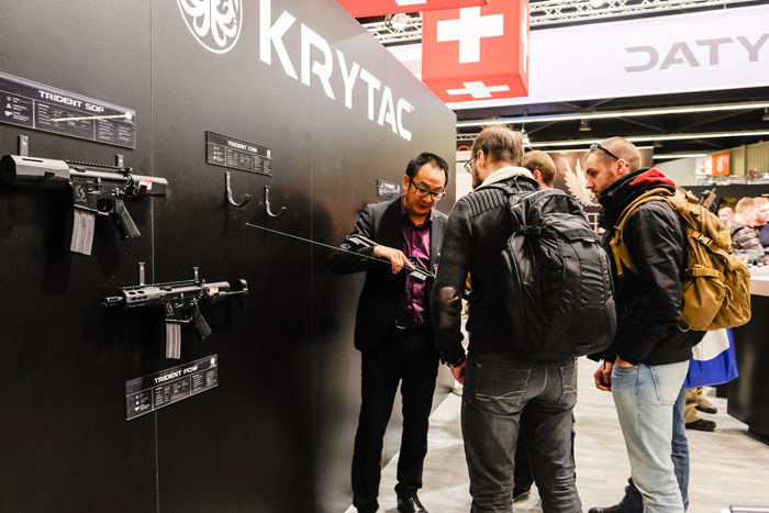 Many airsoft players looked forward to visiting the booth of KRISS/KRYTAC, though they are not located in Hall 7, instead they are in Hall 9 where most of the tactical gear makers are. Greeting me immediately was Jean-Paul Dinh, the Communications Manager, whom we have been in contact with every since KRISS Group decided to have an airsoft venture. Tim Seargeant, the Marketing Manager, was there as well and of course, we had a video of him doing presentations of the KRYTAC AEGs, especially the soon to be released KRYTAC LMG Enhanced and the Trident 47. Also on display are the KRYTAC Trident Family which many of are familiar with including the Trident SPR in OD Green.
