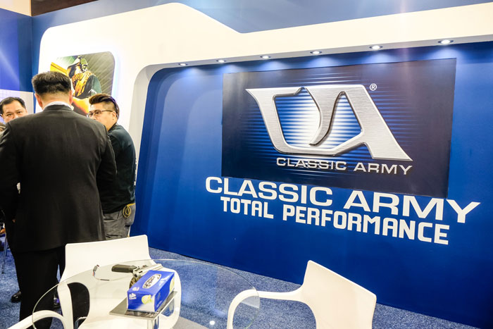 Just right beside the ASG booth is Classic Army, where Peter Ho showed me the Apex AEG line up. The Apex airsoft AEGs are now available in various AR models such as the R5 Series (M8, M10, M12, and M14 models), Carbine RIS and CQB-R, and the MK13 Series (Mod 3, 4, 5, 6, 9, and 10 models). These are full metal AEGs, with steel sling swivels, flip-up sights, and battery stock that can handle 9.6v batteries. Colours are black and the popular dark bronze. For 2015, the Apex Gearboxes will come with integrated MOSFETs, which is attached to wiring of the gearbox rather than embedded on the gearbox shell and heat resistant polymer tappet plate and trigger switch, the configuration which Peter explains helps prevent trigger burn brought about by firing often in semi-auto, or high discharge rate Lipo batteries.