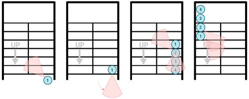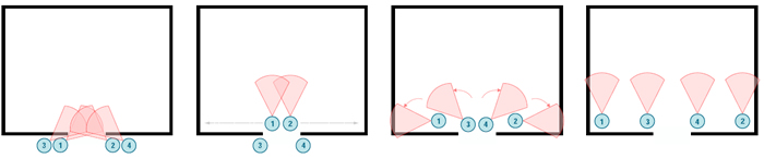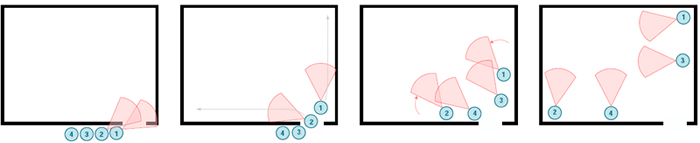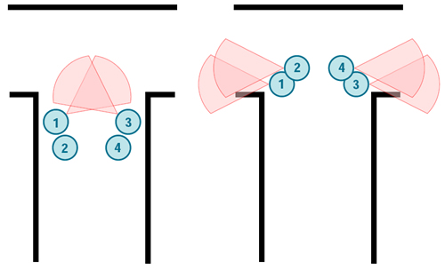 If the door is wide enough, the first two operators can enter simultaneously and button-hook towards their corners.