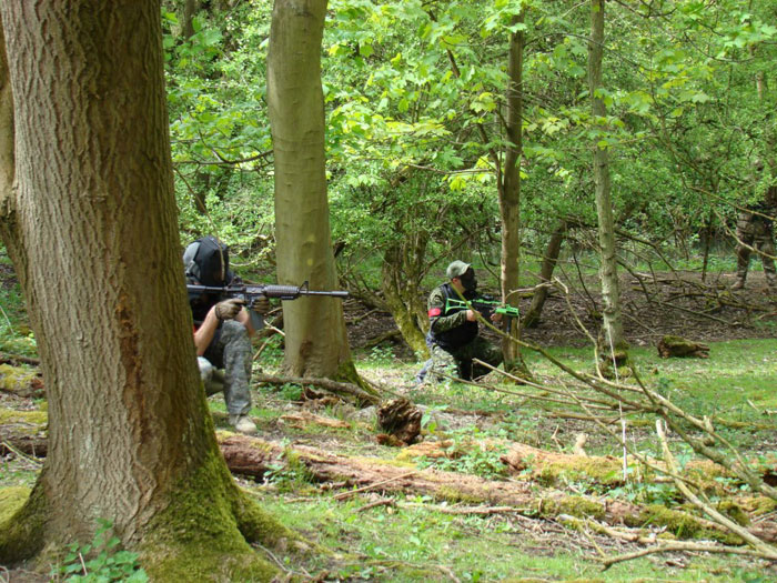 Following the briefing, the first game commenced at the far end of the site. Blues and Reds starting approximately 10 acres apart; the idea being to capture the woodland and buildings between the two parties. I have to say that this was where things started to go very well, and our entire group had ever growing smiles on our faces as all players were taking hits, short bursting their AEGs or single shot or double tap, and strategy was applied as each side tried desperately to out circle or outwit the enemy across fields, through woods, over a small hill with fortifications, along tracks around a lake, over a creek and around obstacles. In the end I cannot remember who won, but when all the players were called together and were standing there introducing each other, having a laugh, I gained the distinct impression that we all had won!