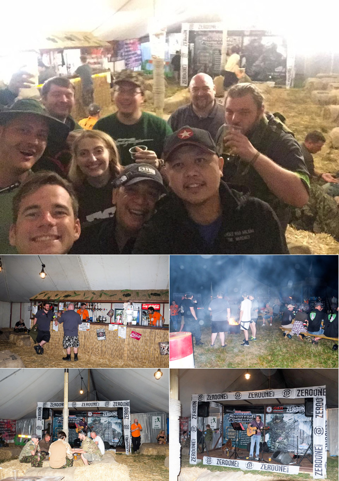 For the first night, there was now live music whereas in recent years it was on the second night. The bar now has its own big ten where players can chill and listen to live music. It was a good place to hangout, and it is where we had a couple of drinks with Will Green Wood who with Kelly Louise Hardwick of Femme Fatale Airsoft organised a quick meet up at bar. Also with us was Airsoft celebrity, BodgeUps Airsoft.