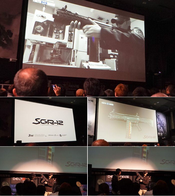 The press event was the first to be held at the Tokyo Marui festival to ensure that friends in the Japanese media will be able to have a closer look at the products unveiled before the public get to see them on the next day. Of the products announced, the most significant is the SGR-12 AES, the second in their Automatic Electric Shotgun Series that started with the much well-received AA-12 AES. The SGR-12 maintains the same technology as the AA-12, but that is not real point in the story of this new Tokyo Marui AES.