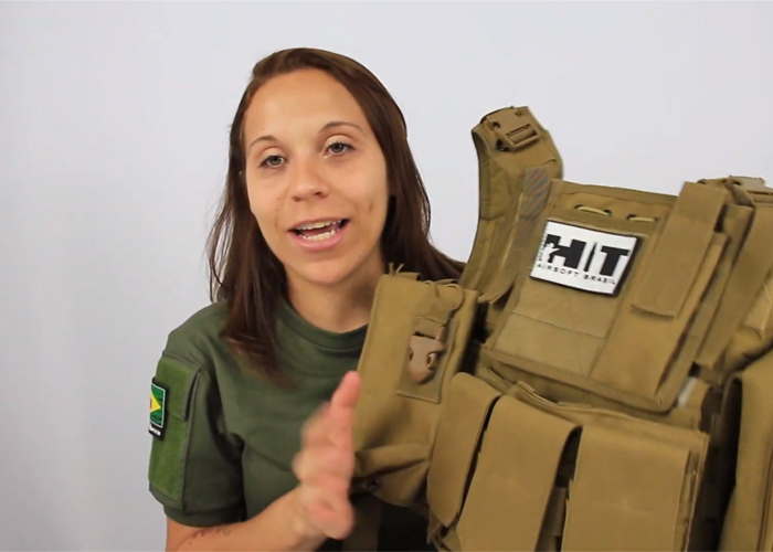 Carol Grillo shows the Kingrin Tactical Vest that is available for airsoft players in Brazil to order... "The KINGRIN tactical vest is suitable for Airsoft and Paintball and is made according to the MOLLE standard.