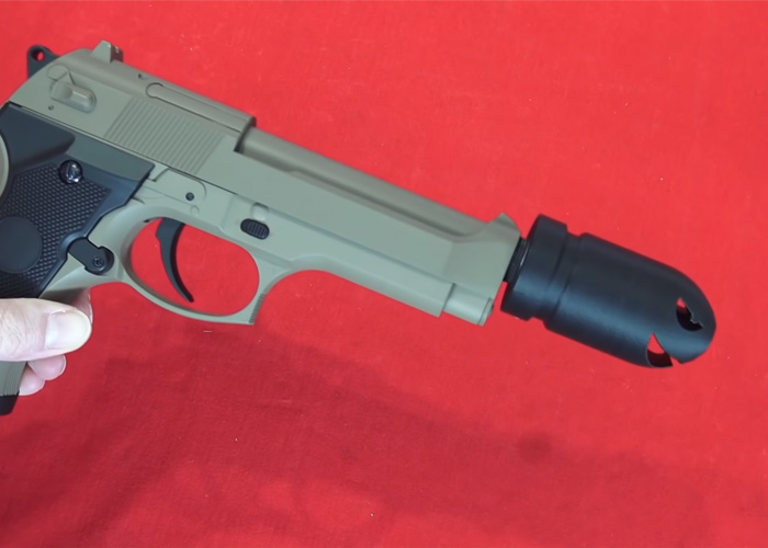 Antre du Dingo Dingchavez features the CCW adapter for the CYMA CM126 or the M92F AEP. This allows one to mount a silencer that is compatible with the CCW thread on the AEP...