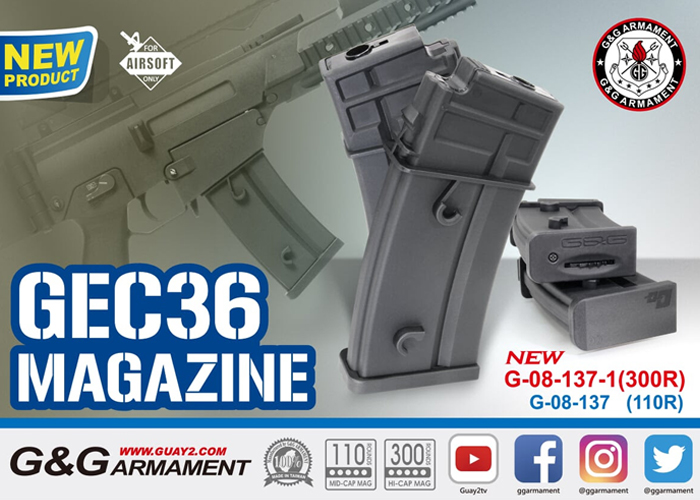 G&G releases a 300-round high capacity magazine for the G&G GEC46 AEG, joining the mid-cap 110-round AEG magazine. There is also a 5-piece set of the 110R for those who prefer using midcaps...